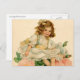 Esta imagem vintage apresenta uma jovem garota sentada sobre um buquê de rosas bonito e rosa.