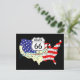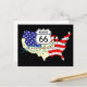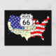 Um postal da Rota 66 histórica com um mapa mostrando seu caminho pela América.