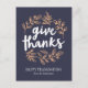 Design elegante e rústico de ação de graças com flores desenhadas à mão e as palavras "dê graças"