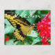 Uma foto de perto de uma delicada borboleta amarela e preta que repousa sobre uma flor vermelha brilhante. "Sonho" de um dia quente e ensolarado quando você envia este cartão postal de fotografia colorida e atordoante. Faz um presente de excelente para alguém especial!