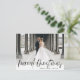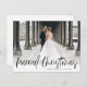 cartão de feriado do anúncio do casamento com um roteiro elegante vermelho e um obrigado que você envia aos seus convidados. A imagem de casais pode ser personalizada.