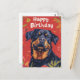 Saudação de aniversário do Rottweiler. Um Rottweiler sorridente deseja Feliz Aniversário. Perfeito para todos os amantes de Rottweiler e donos de Rottweiler.