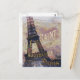 Cartão Postal Rótulo Francês Antigo e Torre Eiffel