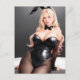 Uma linda loira em um maiô ou lingerie de couro com alguns brincos de orelha de coelho de couro