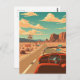 Cruze a Iônica Rota 66 com este cartão postal vintage com um carro clássico na estrada aberta. Estressando de Chicago a Papais noeis Monica, a Rota 66 é a quintessencial viagem de estrada americana, cheia de aventura, nostalgia e vistas intermináveis nas autoestradas. Com seu design retrô, esse cartão-postal captura a liberdade e o entusiasmo de explorar a estrada-mãe em estilo