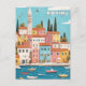 Este viagem mostra uma ilustração esbranquiçada que representa a paisagem urbana de Rovinj. É um cartão postal de excelente para os viajantes a Rovinj, Croácia.