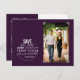 Anuncie seu dia especial com este simples cartão postal roxo de salvar a data, moderno, apresentando um círculo com texto branco e uma foto em cantos de foto cinza. Não há necessidade de cortar sua foto, basta deslizá-la por trás do fundo roxo e você está pronto para ir. Os cantos da foto e o fundo roxo são removíveis. Esquemas de cores personalizados estão disponíveis mediante solicitação.
