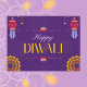 Cartão Postal Roxo Elegante e Lanternas Douradas Happy Diwali