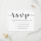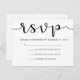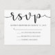Essas placas RSVP de casamento simples e mínimas apresentam caligrafia negra em um white paper.