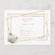 Uma placa RSVP branca e dourada com Rosas Glam Brancos e Dourados. Combina com o convite de casamento do ouro e folha branca do mesmo design