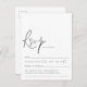 RSVP de Casamento de Script Branco Negro Minimalista. Um cartão postal conveniente para os seus cartões de resposta com o seu nome e endereço no fazer traseiro, é conveniente que os seus convidados preencham a resposta e pop no posto. O cabeçalho está em um estilo de escrita manual de conjunto informal e com os detalhes abaixo.