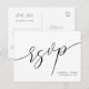 Cartão-postal RSVP de Casamento Clássico de Caligrafia Preto e Branco. Uma adição de excelente a qualquer Suite de Convite de Casamento. Moderno, clássico e elegante. Seleção de menu no verso.