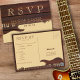 Cartão postal RSVP de casamento de dois blocos coloridos de tom que castanho e violão vermelho. Excelente para amantes de música ou guitarristas.