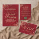 Estes cartões postais RSVP lindos facilitarão a resposta dos seus convidados ao seu convite de casamento. Eles apresentam um belo design com a caligrafia da escrita e bonito caramujos e espirais de folhas douradas florais nos cantos de um fundo vermelho profundo e marmoreado. O verso é um formulário para os convidados preencherem e retornarem indicando o número de participantes e a escolha das refeições. Há espaço para inserir um site para que seus convidados possam responder on-line se preferirem. Clássico e sofisticado, essas placas RSVP são uma excelente adição ao seu conjunto de convites.