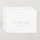 Este elegante cartão postal RSVP de guião Ouro é perfeito para um casamento simples. O ouro minimalista e o design branco apresentam tipografia romântica rico com estilo de vidro moderno. Personalizável em qualquer cor. Mantenha o design mínimo e a classe, como está, ou personalize-o adicionando seus próprios gráficos e trabalhos de arte. Este cartão postal de resposta do casamento pergunta aos convidados qual refeição eles gostariam na sua recepção.