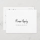 Este cartão postal rsvp de escolha moderna é perfeito para um casamento rústico. O design simples e elegante apresenta a tipografia de scripts clássicos e ricos em preto e branco.