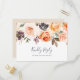 Este cartão postal RSVP, pedido de música para o RSVP, é perfeito para um casamento outono. O elegante design de tons de terra apresenta flores de aquarela rústicas em terracota, cobre, laranja queimado, pêssego, rosa esbranquiçado e branco creme com estilo vintage boho. Crie sua lista de convidados de casamento e sua lista de músicas de dança de uma só vez! Este cartão de resposta do casamento convenientemente pergunta aos hóspedes se eles serão capazes de ir ao seu casamento, e também que música os fará dançar.