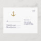 Personalize este Cartão-postal de resposta RSVP de Casamento Náutico moderno na moda. Design azul e branco listrado, definido como um modelo para uma fácil personalização. Convocação de casamento, Cartão RSVP com opção de refeição, Cartão de Programa, Cartões de Direção, Chá de panela, Convite de Janto de ensaio e Cartões de marca de agradecimento e Adesivos de favoritos podem ser encontrados em uma Coleção de Casamentos Náuticos de Na moda.