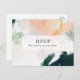 Este cartão postal de RSVP, pedido colorido de música de abstrato, é perfeito para o seu único casamento de boho moderno. Pintado à mão com marcas texturizadas de escamas escura esmeraldas verdes, pêssego e mostarda, todos sobrecarregados com um quadrado transparente minimalista, é certo que dá a sua ocasião um simples, mas rústico sentimento boêmico.