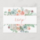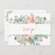Inclua esses cartões postais de RSVP elegantes com sua suíte de casamento. Seus hóspedes podem fazer suas escolhas e enviá-las de volta para você muito facilmente. Buquê magro e elegante de florais de damascos com tons adicionados de esticado, mauve, verde de wasabi, e abalone com verde de folhas, eucalipto, caules e bagas.