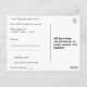 Este elegante design de cartão postal RSVP apresenta a mensagem "rsvp" na frente, juntamente com um nome de evento/ocasião personalizável. Ele também apresenta um formulário de RSVP personalizado no verso, juntamente com um endereço personalizado ao qual as placas de RSVP completadas seriam enviadas. Cartões RSVP como este talvez pudessem ser usados para descobrir quem vai estar participando de um chá de casamento, de uma festa de Natal, de uma festa de janto ou de algum outro evento.