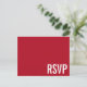 Este design de cartão postal simples e minimalista R.S.V.P apresenta a mensagem "RSVP" na frente. Ele também apresenta um formulário de RSVP personalizado no verso, juntamente com um endereço personalizado ao qual as placas de RSVP completadas seriam enviadas. Cartões de RSVP como este podem ser usados para descobrir quem vai participar de uma festa de Natal, de uma recepção de casamento, de uma festa de aposentadoria, de um chá de fraldas ou de algum outro evento.