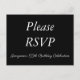 Este respeitável e elegante design de cartão postal RSVP apresenta a mensagem "Please RSVP" na frente, juntamente com uma descrição personalizável de ocasião. Ele também apresenta um formulário de RSVP personalizável no verso, juntamente com um endereço personalizável ao qual as placas de RSVP completadas seriam enviadas. Cartões RSVP como este talvez pudessem ser usados para descobrir quem irá assistir a uma recepção de casamento, a uma festa de Natal, a uma festa de janto ou a alguma outra celebração.