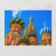 Vista aproximada de cúpulas de Ruas. Catedral de Basil na Praça Vermelha de Moscou, Rússia, contra o céu azul. A catedral também é conhecida como Vasily, Catedral Abençoada, e Catedral da Intercessão dos Teotógrafos Mais Sagrados no Moat. Foi consagrada em 1561. A catedral não tem analogias na arquitetura anterior, contemporânea ou posterior da tradição cultural da Muscovy e da Bizantina.