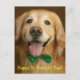 Esta posta apresenta uma fotografia de um sorridente cão que recupera o ouro que está a vestir uma gravata verde do arco. O texto diz: "Feliz Rua. Dia de Patrick!" e "Beije-me! Eu sou irlandês!" mas pode ser alterado ou apagado de acordo com suas necessidades.
