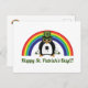 Cartão Postal Rua. Patricks Day Penguin e Rainbow