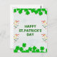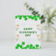 Celebrar Ruas. Dia de Patrick com este cartão-postal festivo, com um fundo de madeira rústico, shamrocks verdes vibrantes e galerias coloridas. O ousado texto verde faz a mensagem sobressair, trazendo uma sensação alegre e comemorativa ao design. Perfeito para enviar desejos de feriado, decorando para uma Rua. A festa do Dia de Patrick, ou inclusive em um presente festivo. Partilhe a sorte dos irlandeses com este cartão postal divertido e animado!