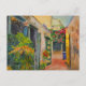 Este cartão postal a cores apresenta uma adaptação de uma pintura de arte fina de uma pequena rua em Rua. Croix, Ilhas Virgens, pela artista americana Anna Unterman. A cena brilhante e ensolarada é um motim de cores. Há uma vinha vermelha, rosa e magenta bougainvillea sobre a autoestrada, bem como videiras de chama laranja e outros arbustos e folhas verdes. Os edifícios coloridos são amarelo, ouro, azul e verde. Retirada com permissão da propriedade de Anna Unterman. Todos os direitos reservados.