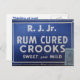 Cartão-postal fotográfico: caixa de charutos vintage, tampa de charutos finos: Rum Soak Crooks! Cada cartão está marcado no lado do escrevendo com: Pensando em você!