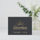 Um obrigado que você postcard com uma ilustração dourada em um fundo de cinza preta. Projetado com uma ilustração de uma montanha com raios solares brilhando por trás. A tipografia diz: "Aventura explore a descoberta de sonhos."