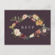 Projetado para coordenar com a nossa coleção de casamentos florais de cor d'água do Rustic Bloom, este elegante cartão postal de RSVP botânico apresenta um spray de mãe pintada a aquarelas em tons ricos de outono de marsala, ameixa burgundy, rosa-pincel e creme, derrubando suas escolhas desejadas de data de resposta e refeições ou seleções de entrada. Um cartão de resposta chic e elegante para o outono ou casamentos no inverno.