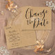 Esta alteração rápida do cartão de data do kraft pode ser personalizada com suas informações de adiamento. O inverso tem detalhes adicionais, incluindo o seu site, com o endereço de devolução e o espaço para o endereço do destinatário. Perfeito para casamentos, chuveiros de noiva, chuveiros de bebês, batismos, festas de noivado, comemorações de aniversário, formandos, encontros de aniversário e outros eventos especiais ao longo do ano! Projetado por Thisnotme©