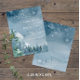 O design azul-poeirento escuro dos partidos Tema economiza o cartão de data (4,25 pol. x 5,6 pol.) com árvores de aquarela e montanhas definidas em um fundo azul-escuro de aquarela. A tipografia emparelha as letras tradicionais com o texto moderno escrito à mão. #SaveTheDate #DustyBlueWedding #BudgetWedding