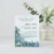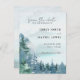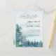 O design azul-poeirento escuro dos partidos Tema economiza o cartão de data (4,25 pol. x 5,6 pol.) com árvores de aquarela e montanhas definidas em um fundo azul-escuro de aquarela. A tipografia emparelha as letras tradicionais com o texto moderno escrito à mão. #SaveTheDate #DustyBlueWedding #BudgetWedding