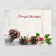 Mande um toque rústico para os entes queridos com este cartão de "Feliz Natal" adorado com pinecones, verde e texturas naturais, trazendo uma vibração agradável de férias.