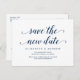 Este é o moderno design rústico mínimo limpo com tema, em Marinho Azul, convite de Festa de casamento Reprogramado (adiado/adiado) cartão postal (Salve a nova data). É a maneira perfeita e elegante de fazer o anúncio de reagendamento para seus amigos e família.