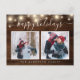 Fundo de madeira rústica Feliz Feriado com luzes de cordas em segundo plano que podem ser personalizadas com 2 fotos postais.