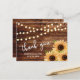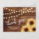 Cartão Postal Rustic Woods e Sunflower Wedding Obrigado