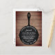 Ilustração de uma habilidade de ferro fundido sobre um fundo de madeira rústica na frente. Texto personalizado para endereços, informações de contato de negócios e medidas de segurança.