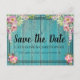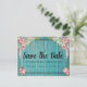 Esta rústica bonito salva a data do cartão postal apresenta um fundo de madeira azul com tipografia de tendência decorada com um buquê floral cor-de-água rosa. Personalize a fonte e a cor do texto de seu gosto.