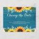 Cartão Postal Rústica Teal Wood Sunflower Wedding Alterar a Data