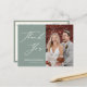 Sage Green Elegant Script Moderno Foto Minimalista Casamento Obrigado Cartão-Postal. Expresse o seu agradecimento aos seus amigos e família que fizeram do seu casamento um especial extra com este belo cartões de agradecimentos de fotos de casamento. Todos os textos estão pré-organizados para que você personalize fácil e rapidamente com suas próprias palavras.