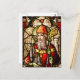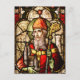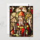 A imagem de São Patrick criou em vidro manchado. São Patrick, o santo padroeiro da Irlanda, tem um funcionarios numa mão e a igreja na outra. Vintage belas artes em dominio público.