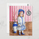 Um retrato de uma boneca bonita de Bebe Bru em um vestido do victorian com um motivo azul do salgueiro.