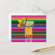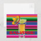 Cartão-postal com imagem do cobertor mexicano com uma fotografia de tequila e limão com sombrero.
