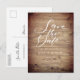 Cartão Postal Salvar a Data Rústico em Madeira com Letra